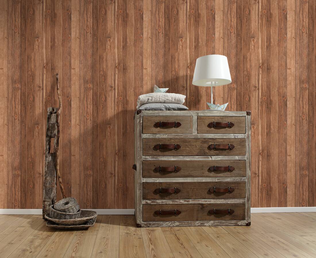 Proposta de Papel de Parede estilo Madeira, Casa de Campo, Bege, Castanho.