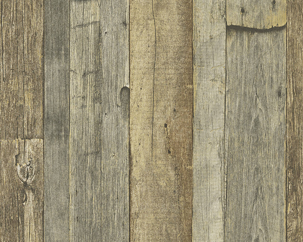 Papel de Parede Madeira, Casa de Campo, Castanho, Creme, Amarelo 95931-3