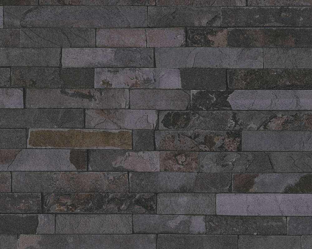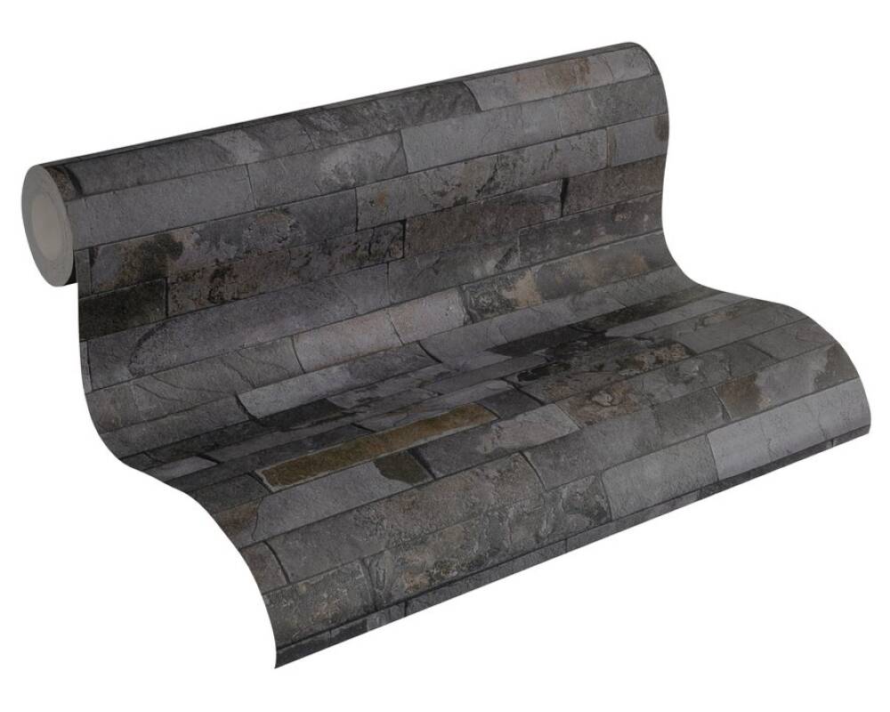 Papel de Parede Pedra, Casa de Campo, Preto, Cinzento 35582-5