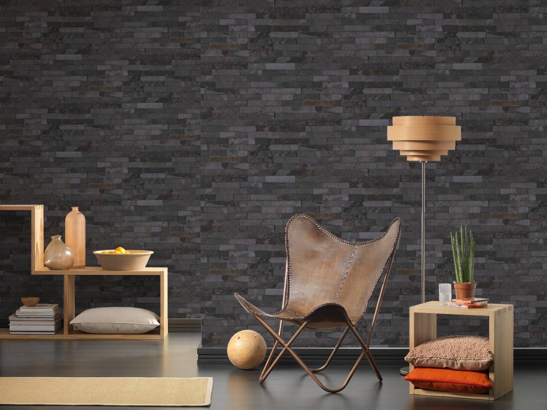 Dispomos de modelos de papel de parede com relevo em pedra e acabamento em várias cores e padrões, com cinzento, castanho e muitos mais.