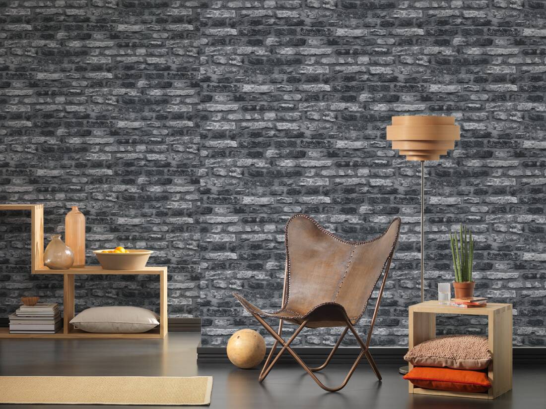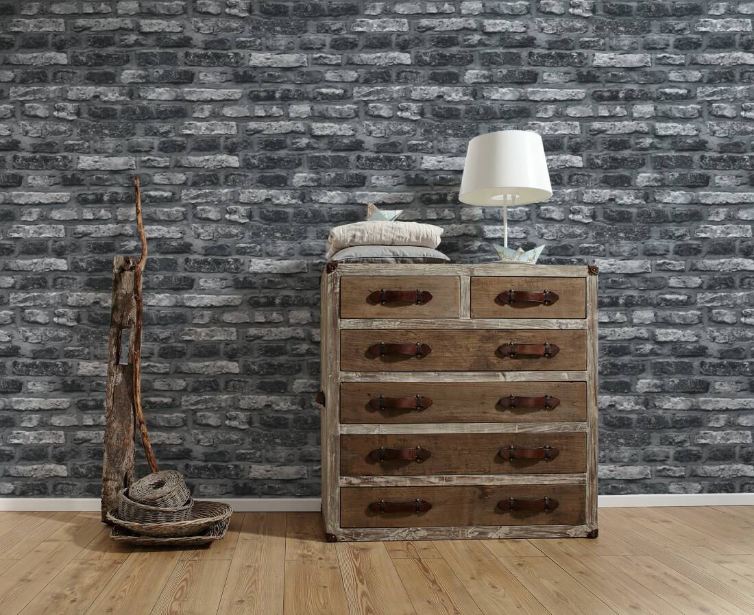 Proposta de Papel de Parede estilo Pedra, Casa de Campo, Preto, Cinzento.