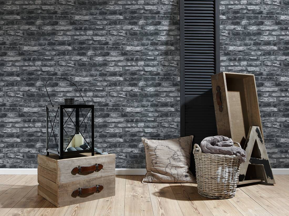 Papel de Parede Pedra, Casa de Campo, Preto, Cinzento 36281-2