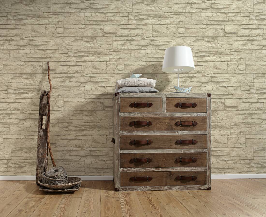 Proposta de Papel de Parede estilo Pedra, Casa de Campo, Bege, Creme.