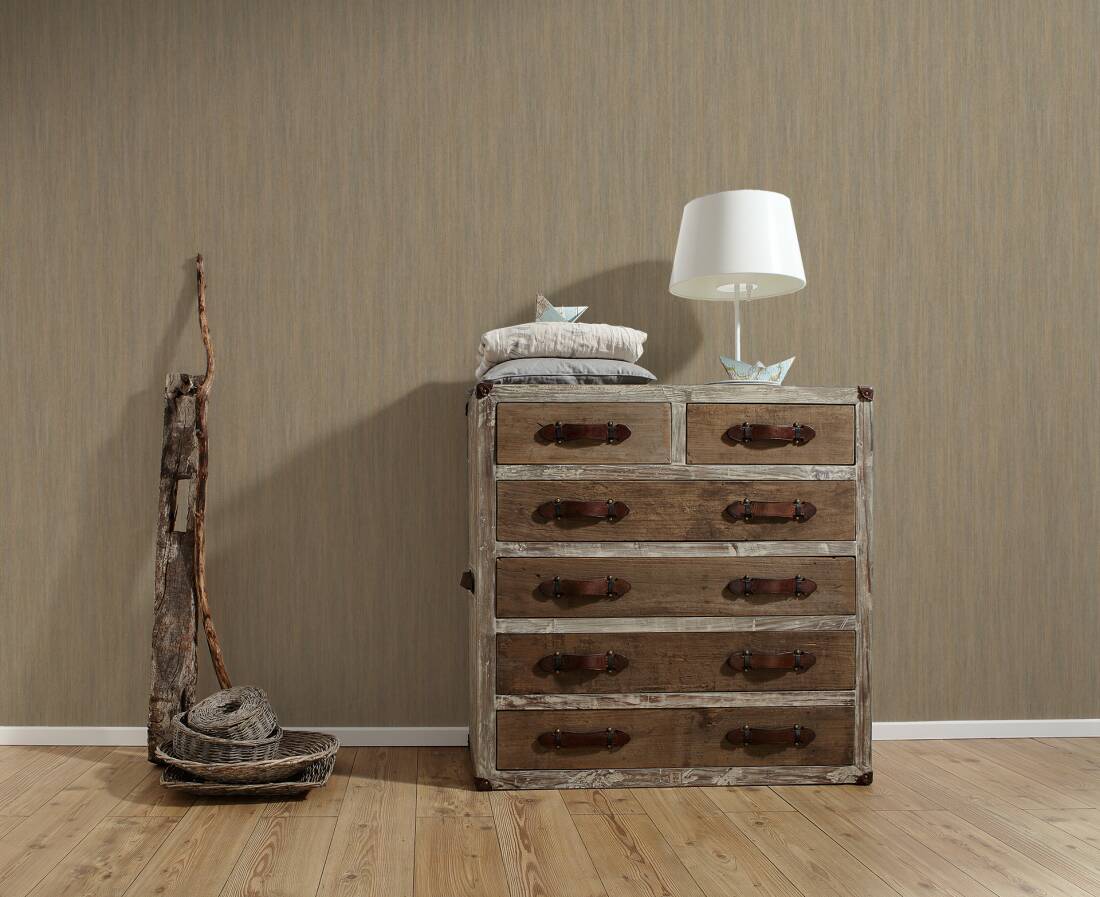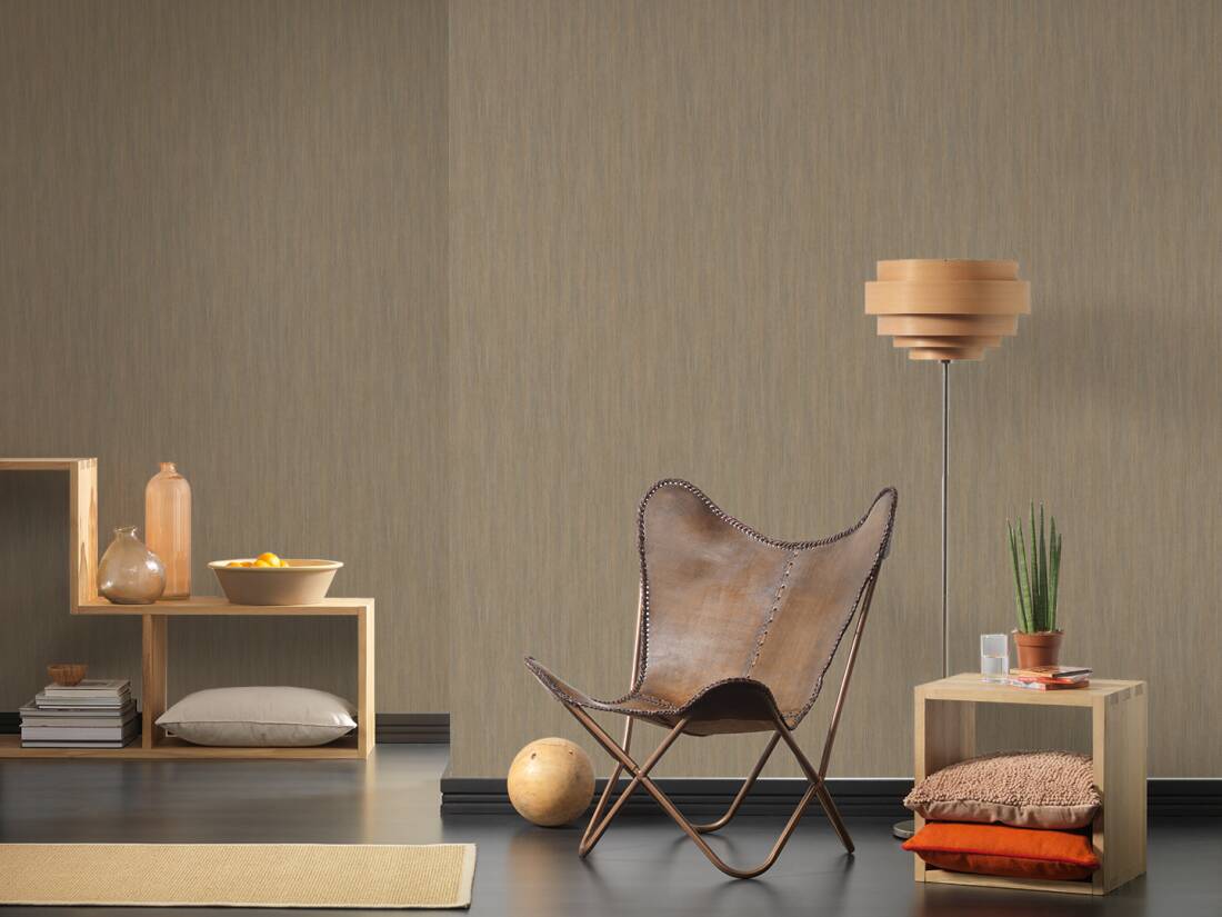 Papel de Parede Tropical, Folhas, Uni, Castanho, Dourado, Metálico 32882-5