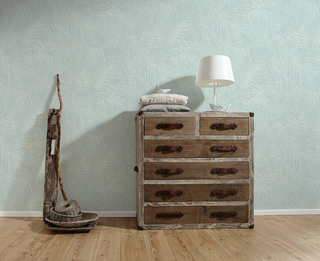 Papel de Parede Tropical, Folhas, Selva, Floral, Azul, Verde, Turquesa 37371-4