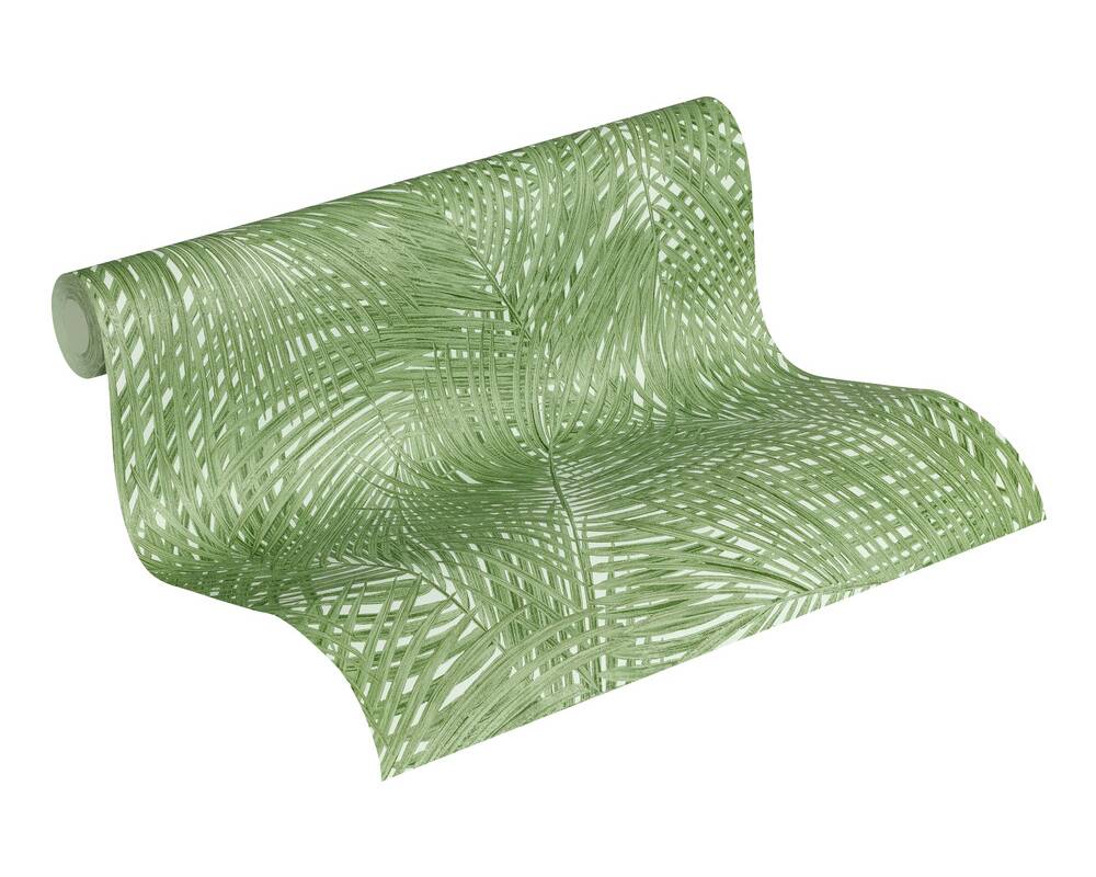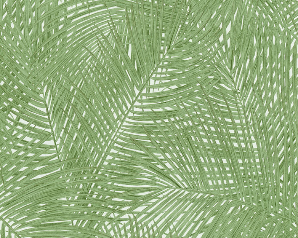 Papel de Parede Tropical, Floral, Verde, Branco, Folhas, Selva 37371-5