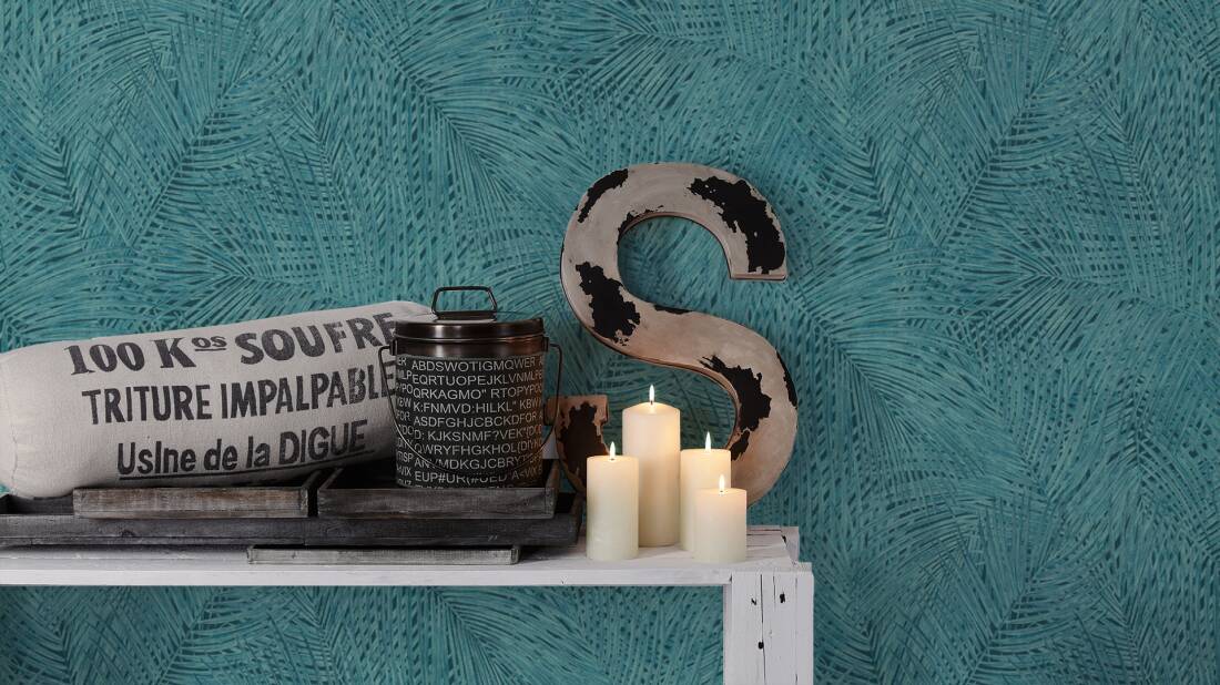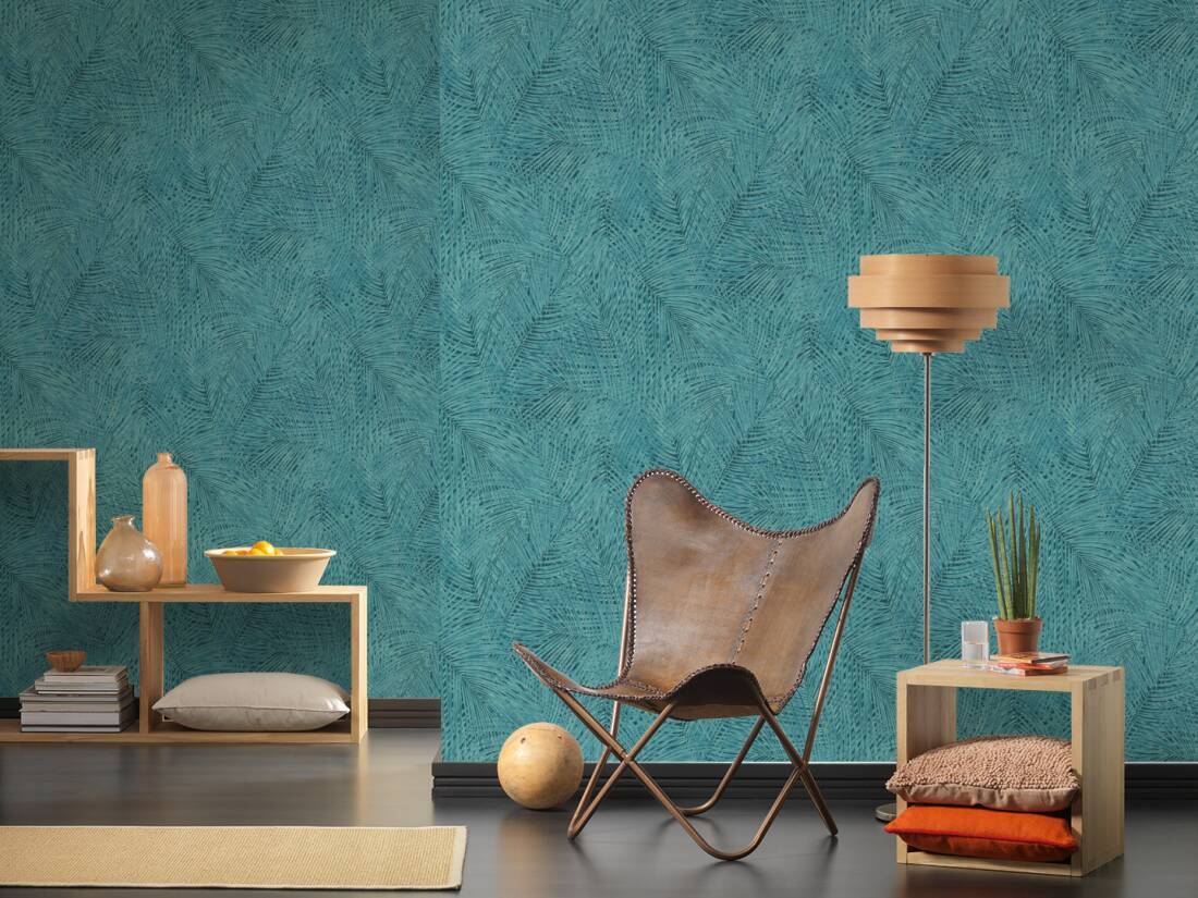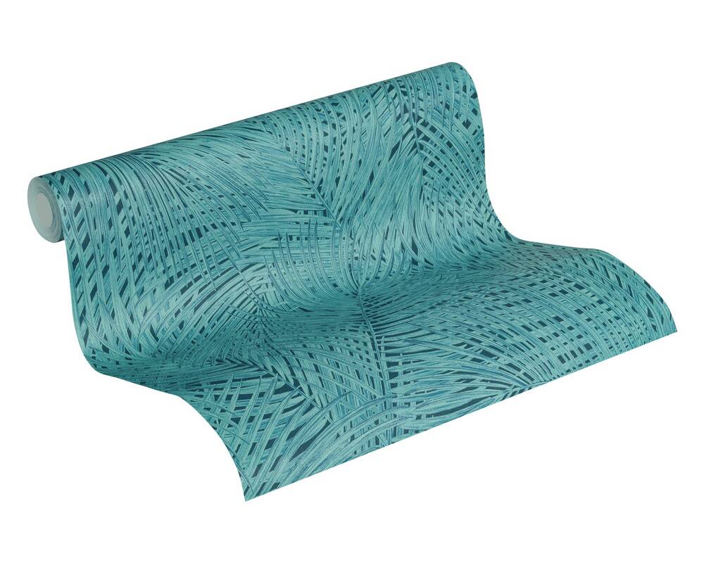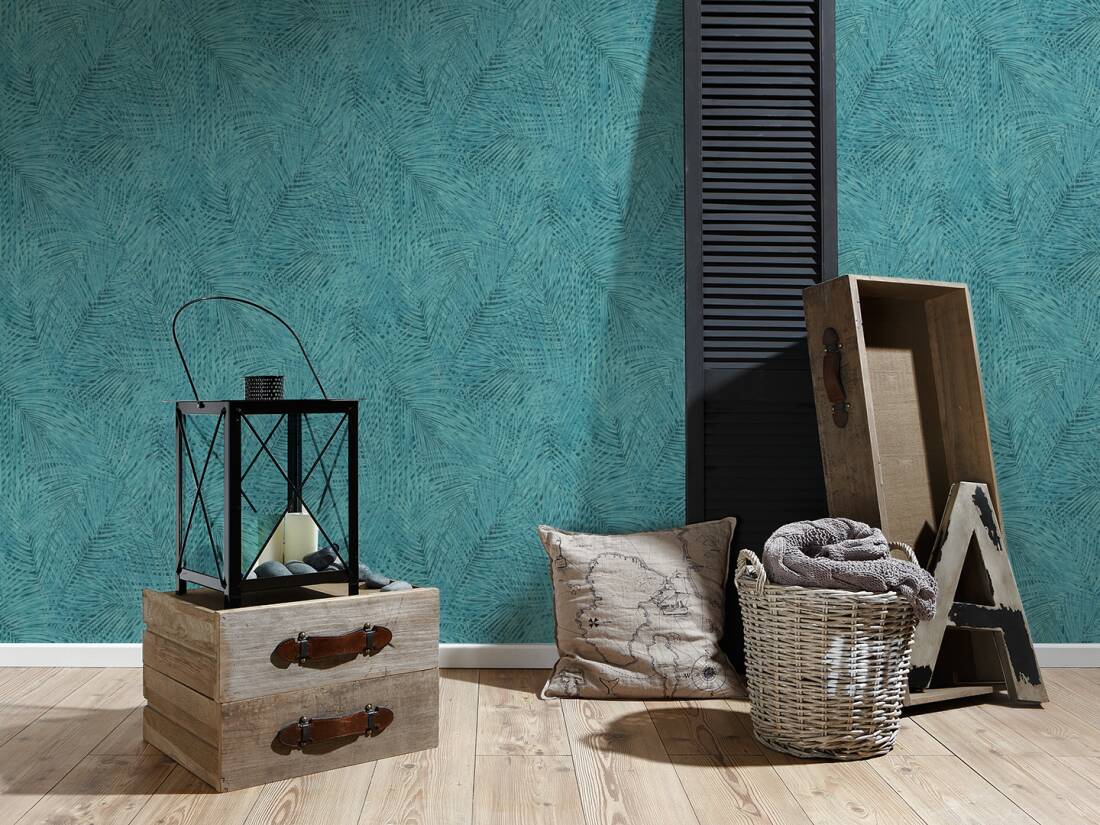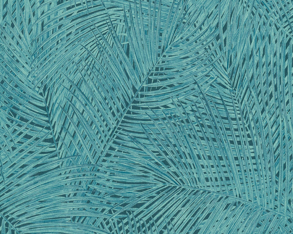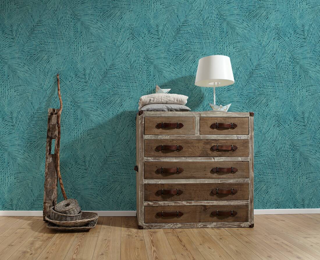 Papel de Parede Tropical, Folhas, Selva, Floral, Azul, Verde, Turquesa 37371-6