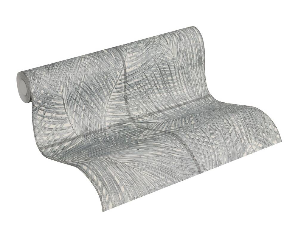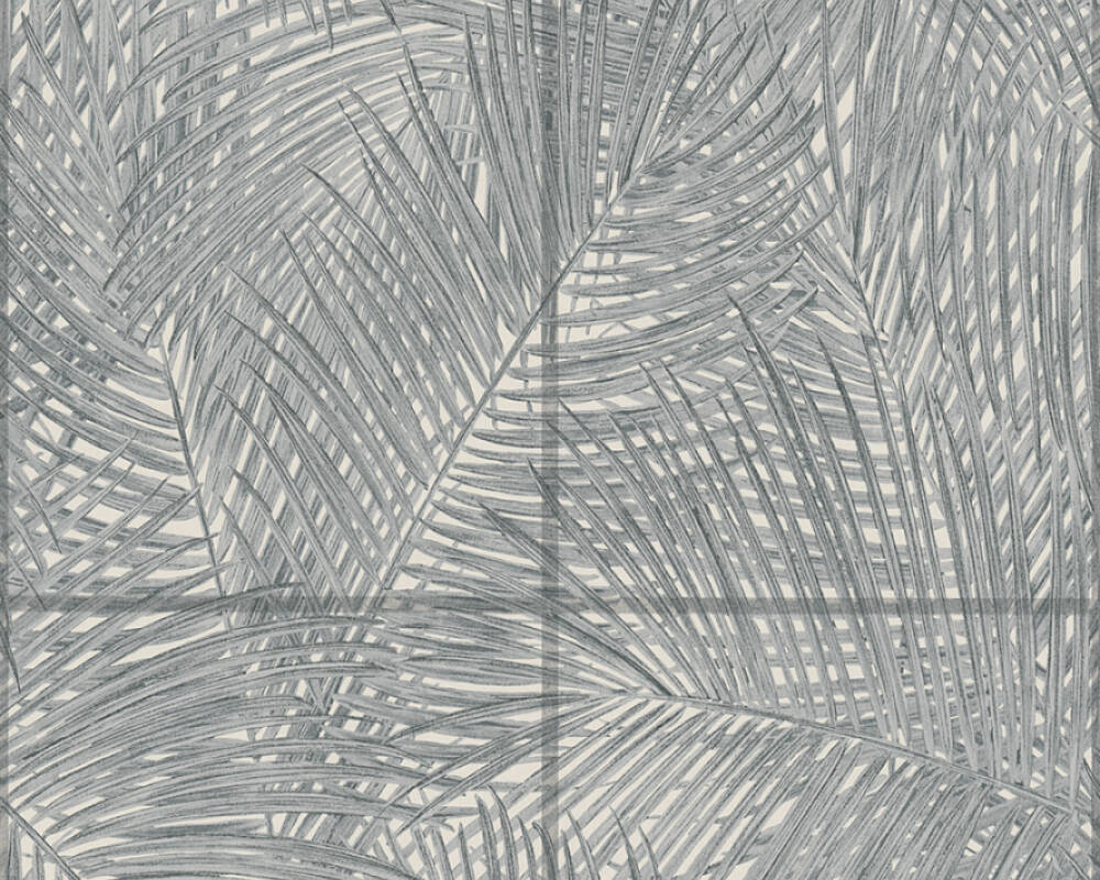 Papel de Parede Tropical, Folhas, Selva, Floral, Azulejo, Preto, Cinza, Branco 37372-2