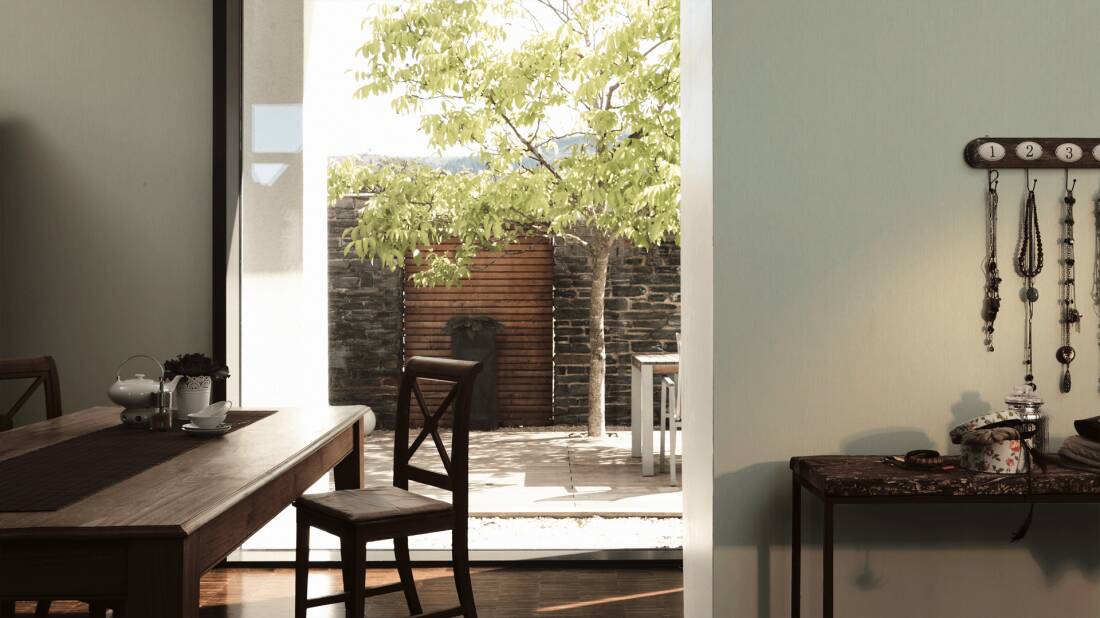 Estilize o seu papel de parede tropical chic escolhido com plantas de interior para adicionar profundidade e completar o visual.