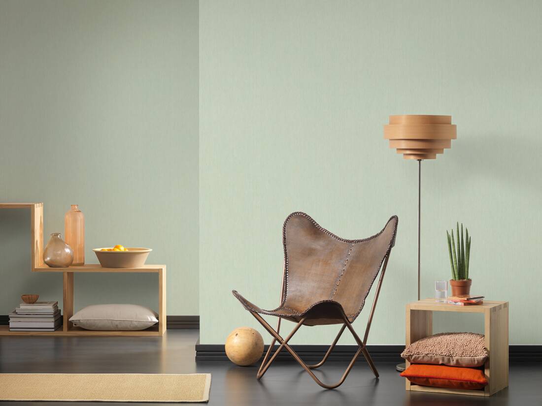 Esta proposta com tema floral da Ilha de Sumatra que apresenta um papel de parede estilo Tropical, Folhas, Uni, Verde-claro.