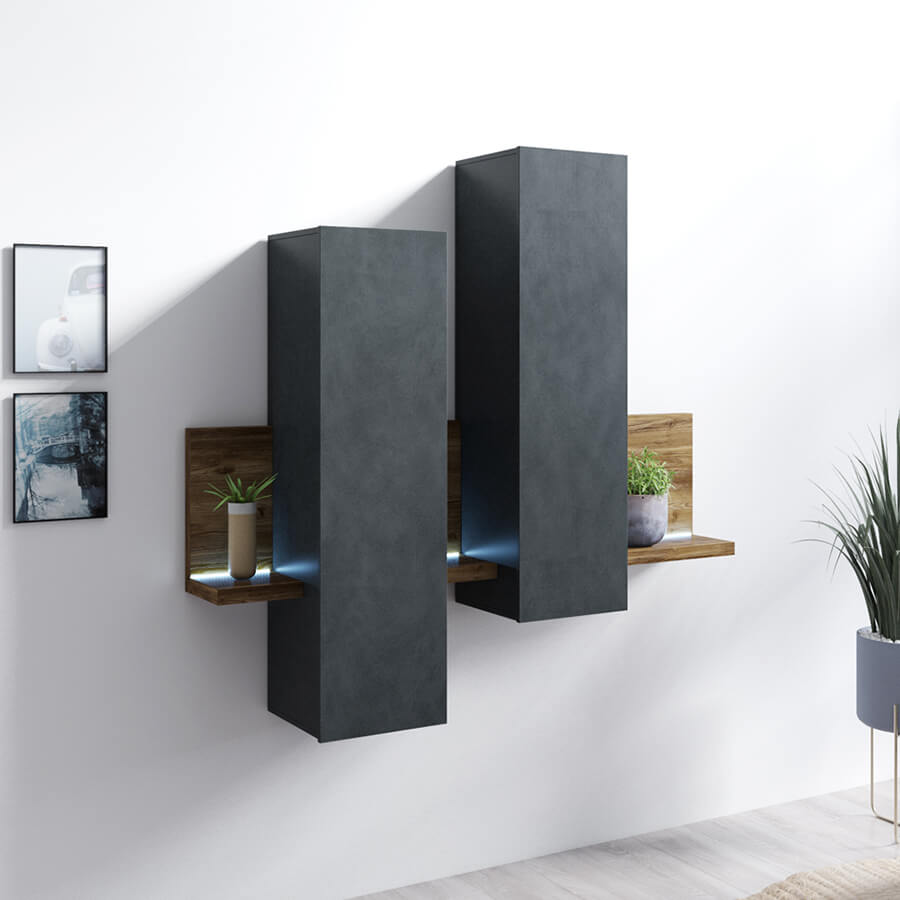 - Prateleira com dois armários e LED
