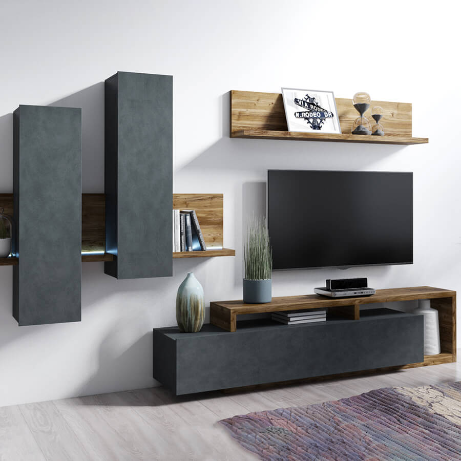 - Acabamento de Antracite Cinza Escuro e Abeto Suíço.