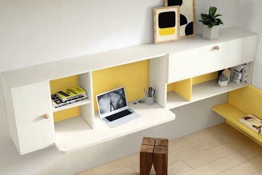 A Secretária Lua, juntamente com as galerias suspensas, criam uma interessante área de estudo, enquanto a área de descanso é original e prática graças à prateleira da cama frontal.