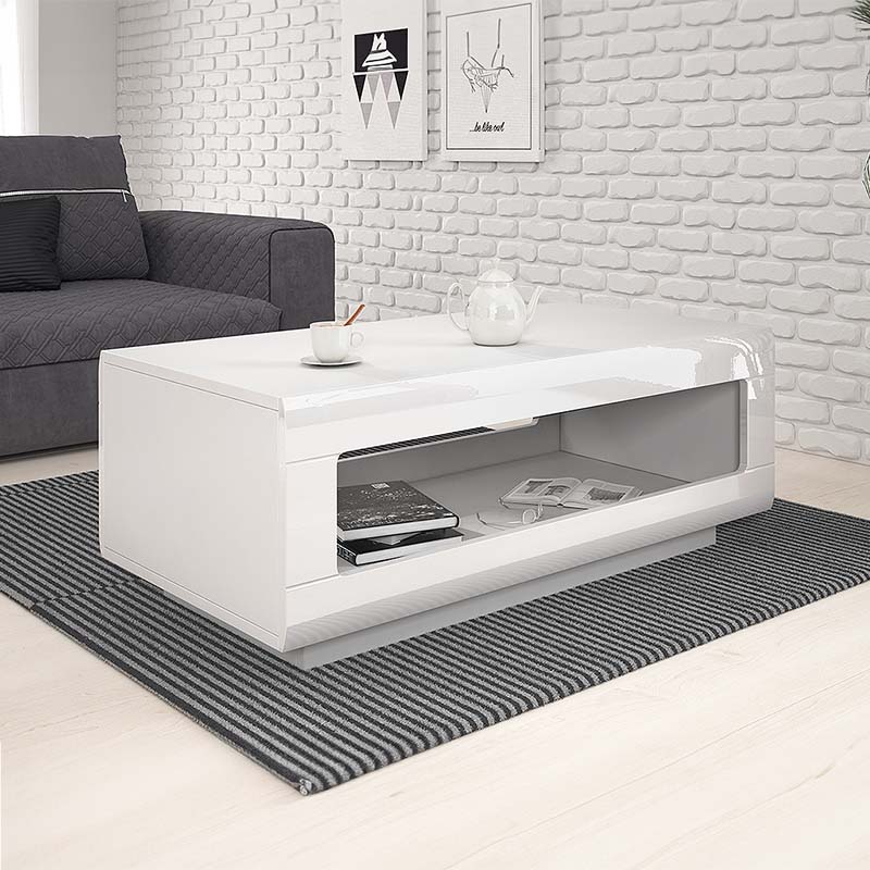 - Mesa de Centro em Branco com 110 cm de largura.