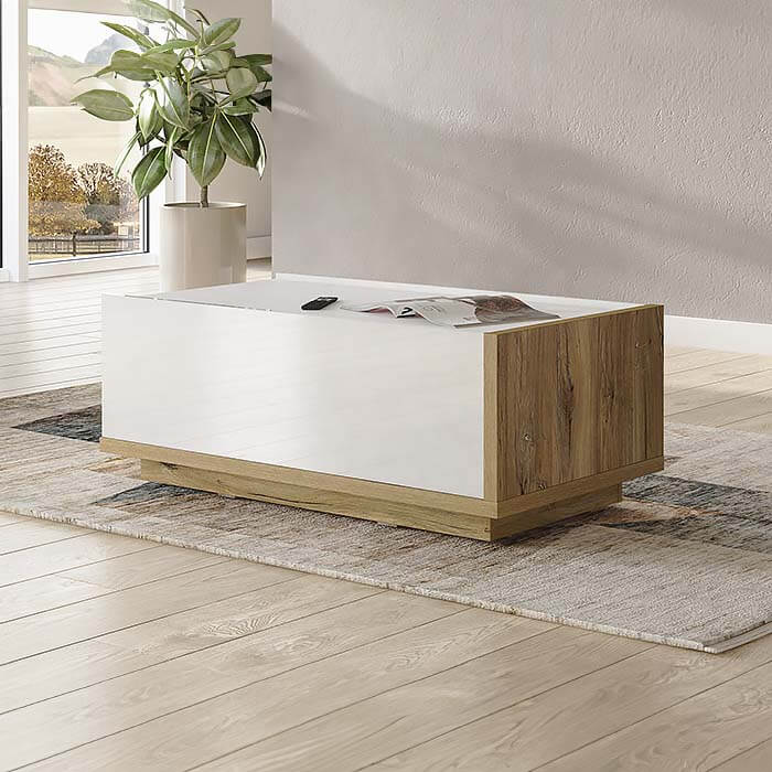 - Mesa de Centro: Espaço para arrumação com porta e compartimento adicional.