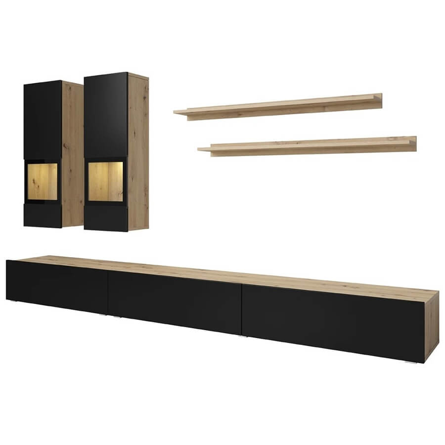 Sala Moderna Completa em Carvalho e Preto Baros