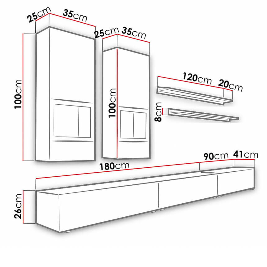 - Móvel TV Largo com três portas: 270/26/41 cm.