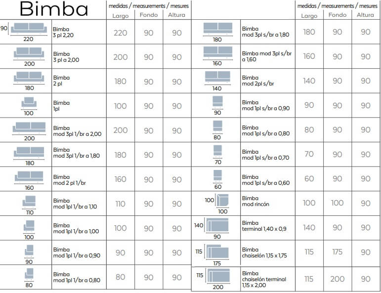 • Estrutura: madeira de pinho com camada de espuma de poliuretano.