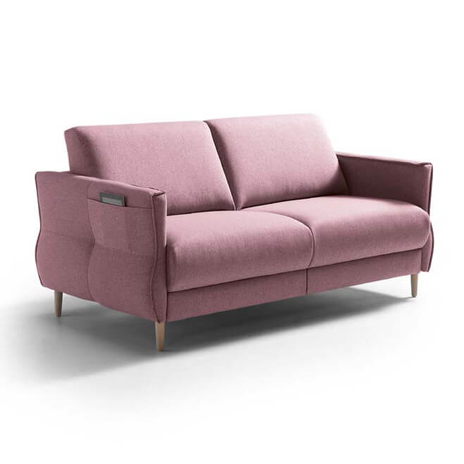 Os braços contêm detalhes em relevo e bolsos para uma pitada extra de sofisticação. Sinta a delicadeza da fibra no assento e a firmeza perfeita das costas. O mecanismo de cama italiano assegura anos de uso sem problemas.