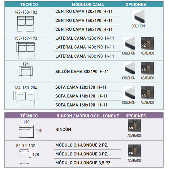 SKU: Chaise Longue 235 cm: Lateral Cama 120 H-11 + CH-Longue 2 PZ | 432+264 S/200
