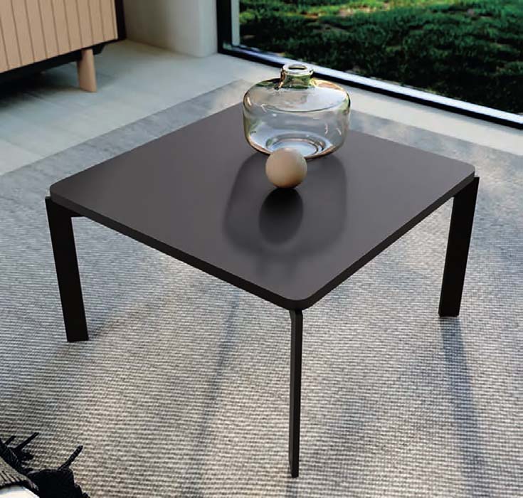 A mesa de centro apresenta um design simples e sofisticado. As linhas finas e retas conferem leveza visual ao espaço.